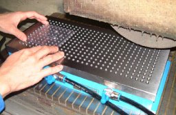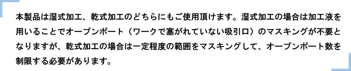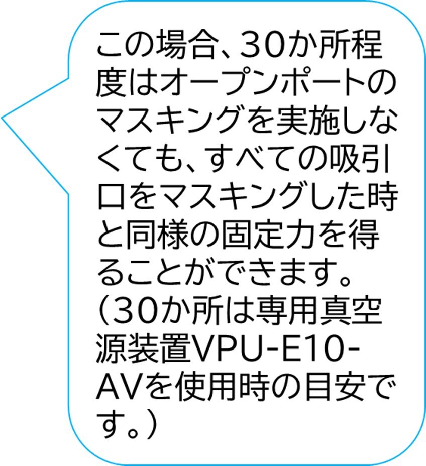 アクリルプレート等をワークに当て、オープンポートを塞いでください。 プレートをワークに当てることで、 横ずれ防止のストッパの役になります。