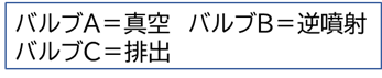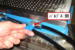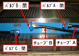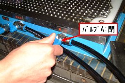 3か所のバルブが「閉」の状態であることを確認し、バルブAを「開」にしてください。