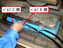 バルブCからはチャック内に残留した加工液・スラッジを排出します。
