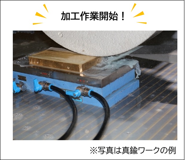 任意の位置にワークを置いてください。ここではストッパ使用をしていませんができるだけ横ずれ防止のストッパをご使用ください。