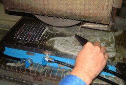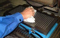 エアーを吐出させながらスクレーパ等で作業面をクリーニングしてください。