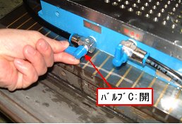 3か所のバルブが「閉」の状態であることを確認し、バルブAを「開」にしてください。