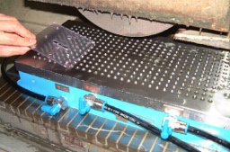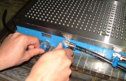 任意の位置にワークを置いてください。ここではストッパ使用をしていませんができるだけ横ずれ防止のストッパをご使用ください。
