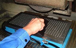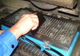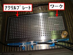 アクリルプレート等をワークに当て、オープンポートを塞いでください。 プレートをワークに当てることで、 横ずれ防止のストッパの役になります。