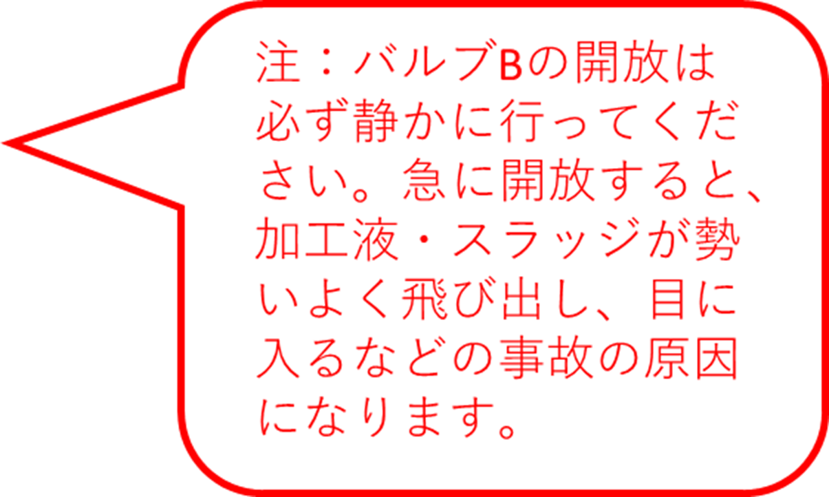 バルブCからはチャック内に残留した加工液・スラッジを排出します。